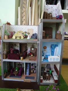 Starting in August I worked on this 24th scale house. The house itself is two cardboard storage boxes joined together to create one large five floored town house.