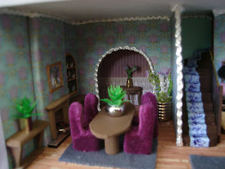 The Art Deco room features some furniture kits from Petite Properties (the couch, chair and fireplace). This was one of those rooms I just couldn't layout nicely. I also apparently never managed to get a really good photo of it.