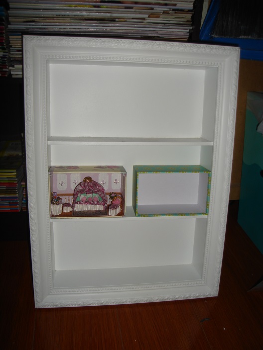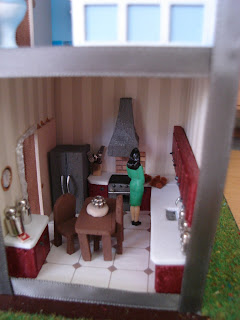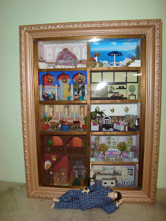 Next I dropped down to 48th scale to fill this recessed frame with ten little boxes each containing a separate room or scene.