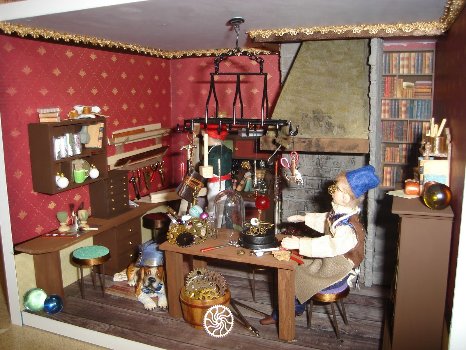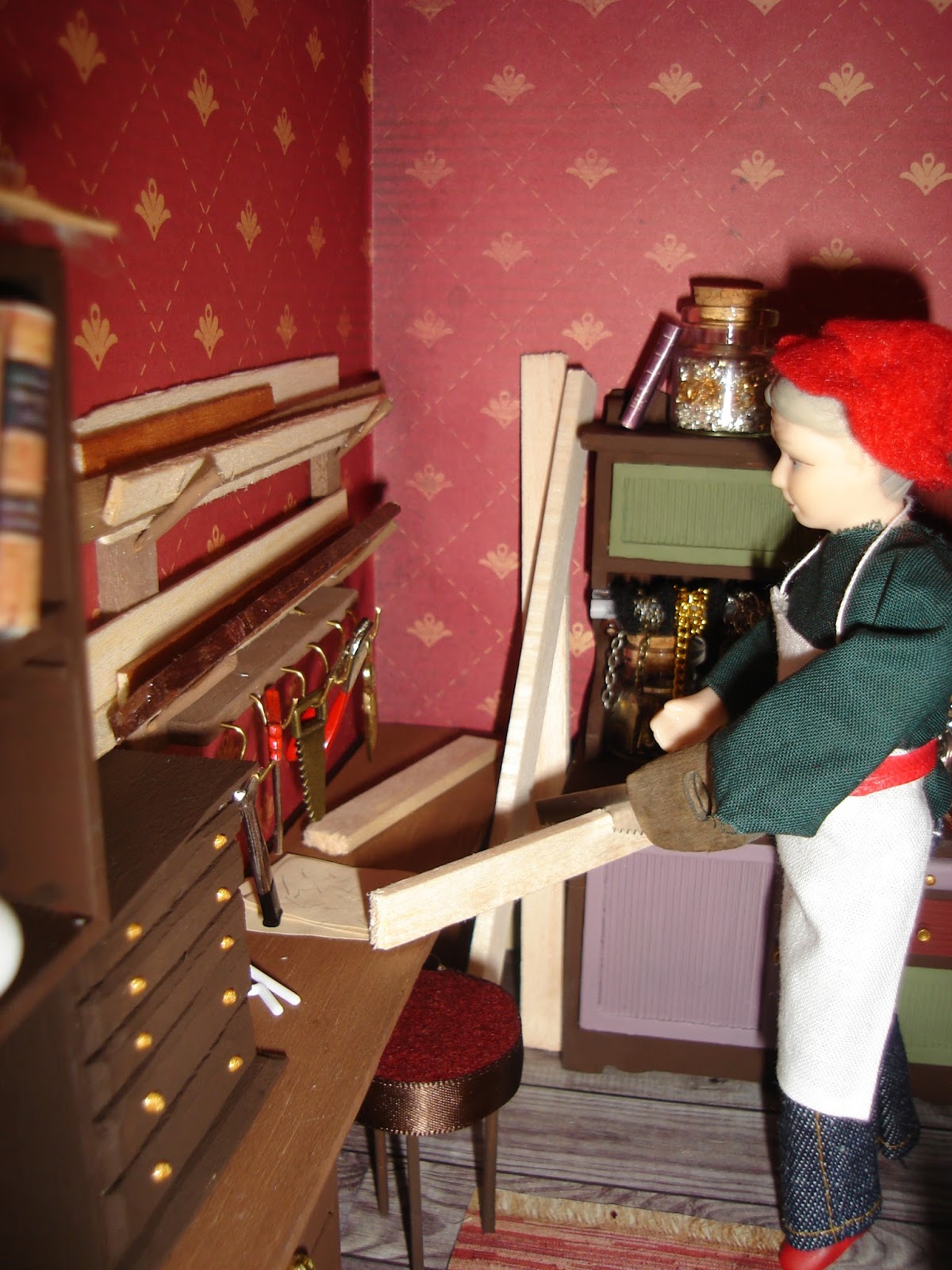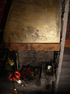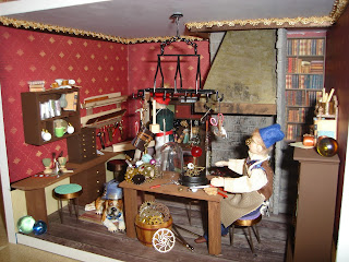 By now it was December and not wanting to start anything major until after Christmas I worked on two 12th scale vignettes. The first of which was this wizard's table laden with magical supplies and paraphernalia.