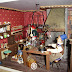 The Workshop has an open stone fireplace which can be employed as a forge to heat metals for working. In the corner beside the fire is a stone stair that disappears behind the chimney and provides the illusion of access to the room.