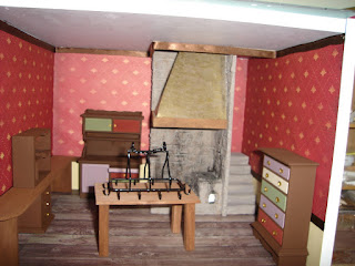 Finally I went into the local Post Office the other day and found this child's dollshouse kit reduced to $20 from $90. How could I refuse? It's about 24th scale in size and very nicely finished for a basic child's toy. Now the only question is what to do with it . . . ?