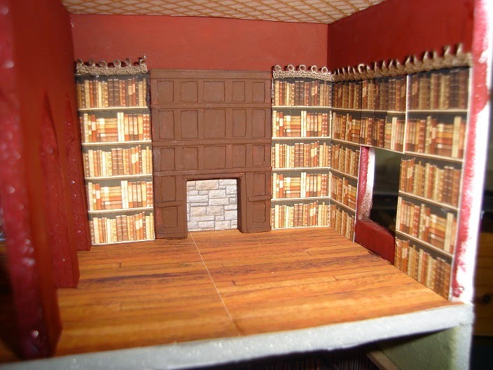 I've already added some interest to the top of the front wall in the form of this dragon medallion. It is a jewellery pendant in a cardboard scrapbooking frame painted the same stone colours as the walls. I wonder though if I should paint at least the dragon in a different colour to make it stand out more (and look less bland!).